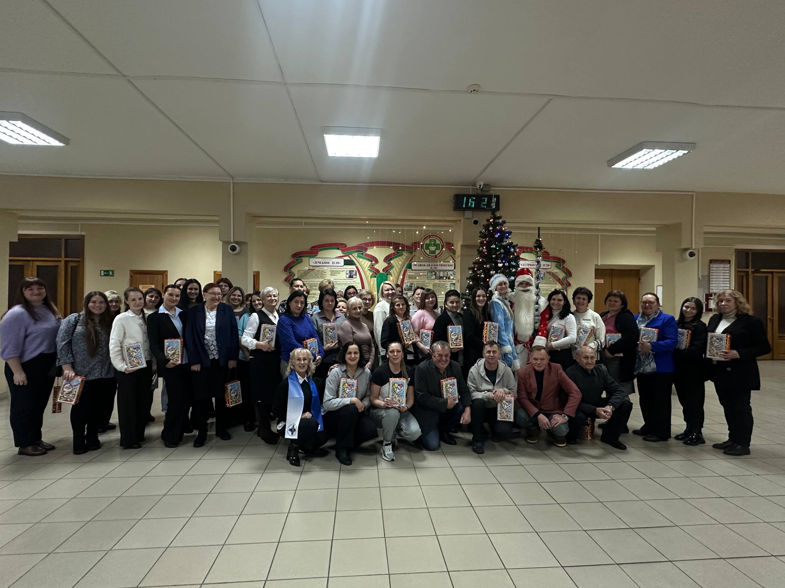 Рабочие будни всех корпусов нашего медицинского колледжа неожиданно прервались на самое настоящее новогоднее чудо. По инициативе и от лица профсоюзной организации поздравить сотрудников с наступающим Новым годом пришли самые главные волшебники — Дед Мороз и Снегурочка!